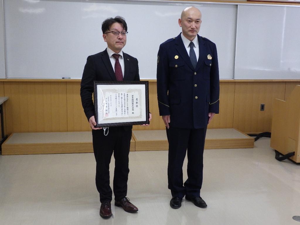 遠軽警察署から表彰を受賞しました!