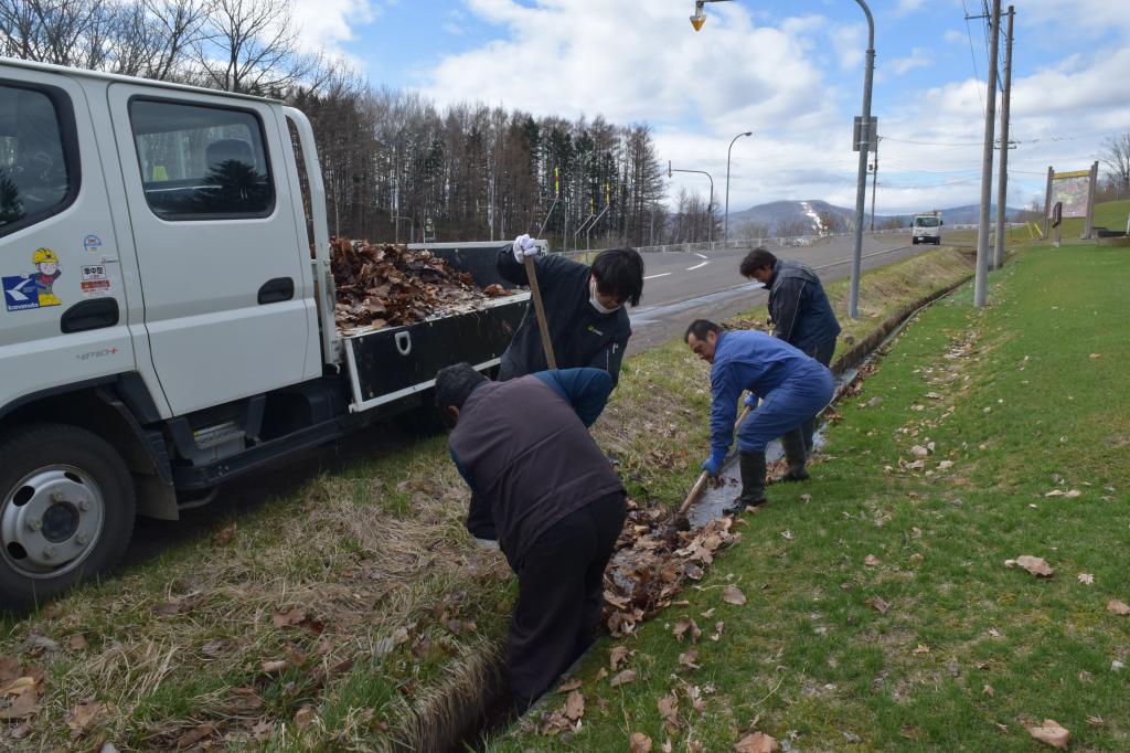 雪解けにともない、目立ち始めるゴミや落ち葉を回収し、町道美化に努めました。